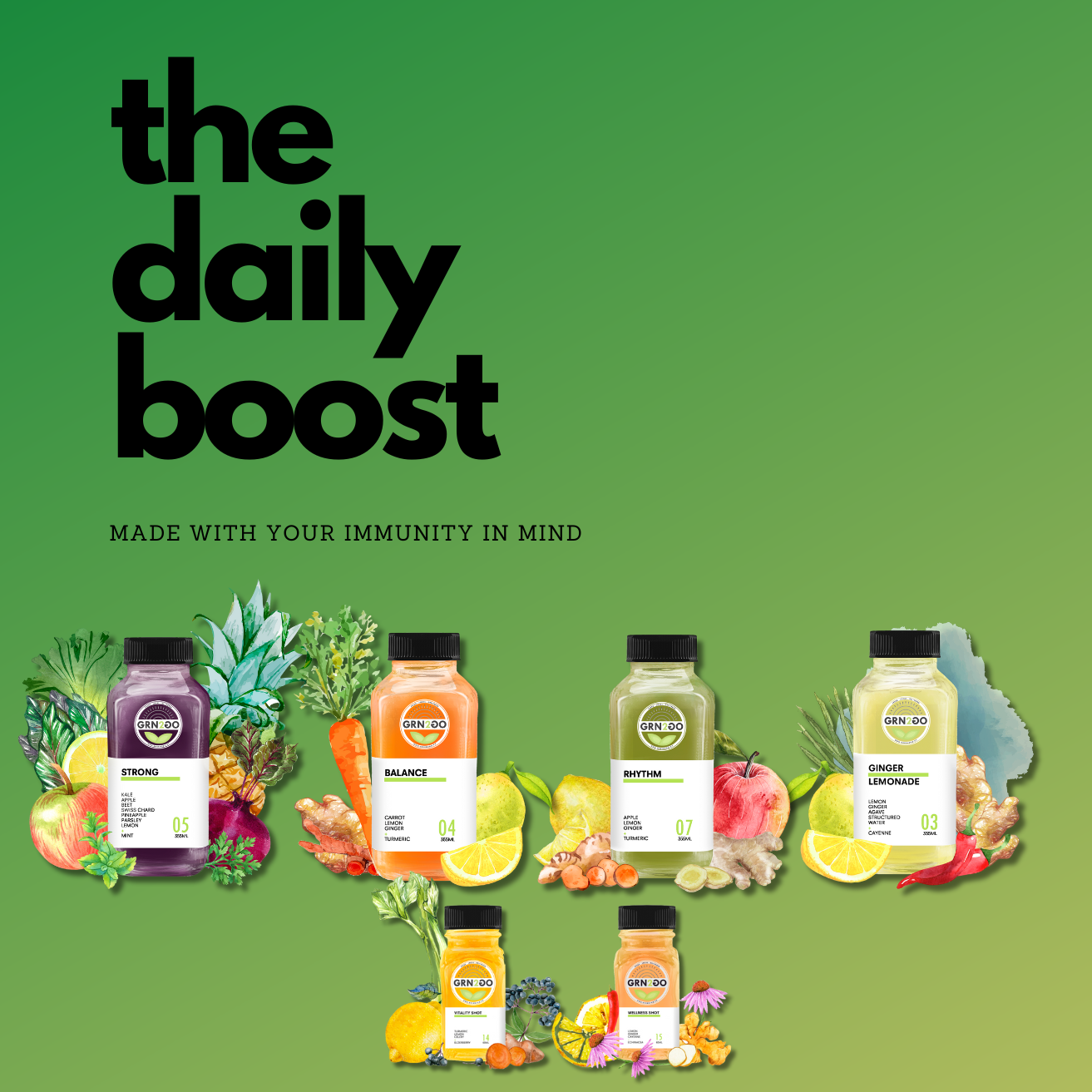 Designed to fortify your immune system, The Daily Boost provides your body with the essential nutrients it needs to combat bacteria and unwanted pathogens. This carefully crafted lineup delivers a powerful blend of antioxidants, vitamins, and immune-supporting ingredients to keep you feeling strong and resilient every day.